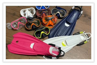 ABC Material (Maske, Schnorchel, Flossen, Füsslinge, Handschuhe, Kopfhauben)